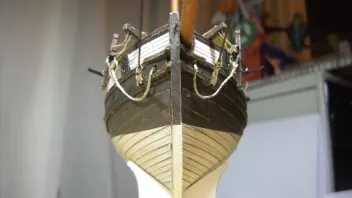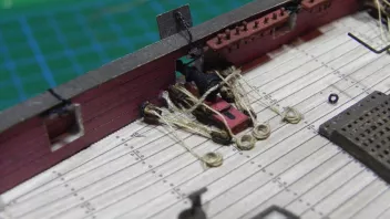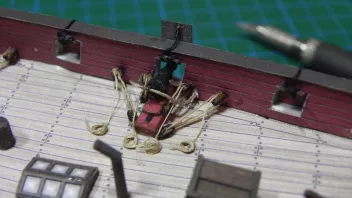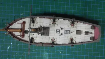 Somit kann ich mich nun endlich der Takelung des stehenden Gutes widmen, da das Deck nun komplett ausgerüstet ist. Wie auch das Bild aus der Vogelperspektive zeigt.