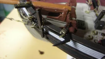 Nachschub ist in allen Belangen eingetroffen. 2mm-Blöcke für die Geschütz-Takelage, 0,5mm Takelgarn schwarz für die Wanten, Pütting(e/s?) und Jungfern, deren Zusammenbau mir momentan noch ein Rätsel ist, aber auch das werde ich lösen, Fachliteratur und auch Freizeit-Literatur zum Thema. Somit kann es an allen Enden weiter gehen s7