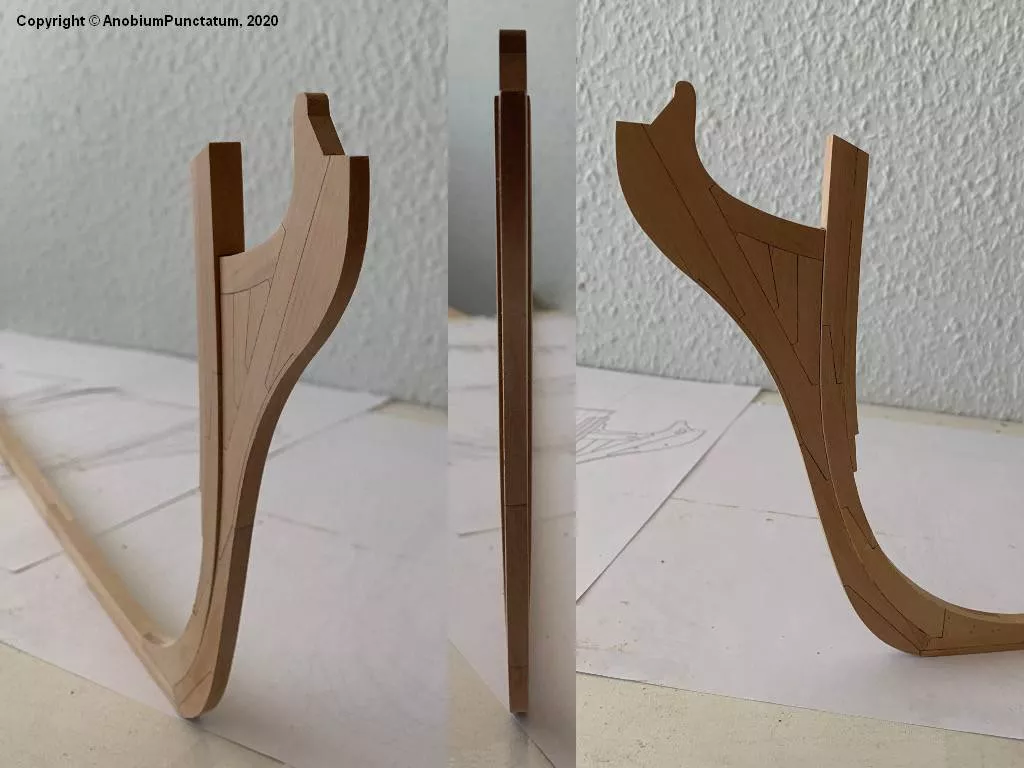 Das ist mein Ziel. Es geht aber nicht nur um die Spanten sondern auch um alle anderen Hölzer und Details, die zur Konstruktion des Schiffs gehören.