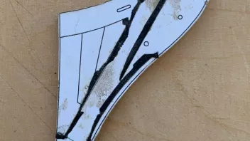 Die alte Vorlagen wurden entfernt und eine neue Vorlage aufgeklebt und ausgerichtet. Abschließend wurde das Bauteil in Form geschliffen.
