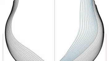 Die letzten 2,5 Monate habe ich die Spanten aus den Linienrissen herausgezeichnet. Mittlerweile sind alle Parallelspanten und die vorderen Kantspanten fertig. Die beiden Bilder zeigen einmal die äußeren Konturen und einmal die inneren Konturen. Anhand der beiden Übersichten werden die einzelnen Spanten kontrolliert.
