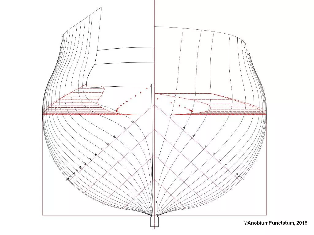 Da ich in den letzten Jahren etwas Erfahrung bei der Rekonstruktion eines Linienrisses nach Originalplänen sammeln konnte, beschloss ich, eine eigene Rekonstruktion des Schiffes in Angriff zu nehmen.
