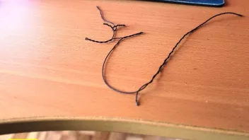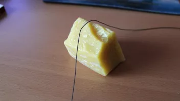 Einmal kräftig durchgezogen, dann den Faden noch ein paar mal kräftig zwischen den Fingern hin und her gleiten lassen, um das überschüssige Wachs wegzubekommen, und gut ist. Der kritische Blick durch die Lupe zeigt: Praktisch fusselfrei!