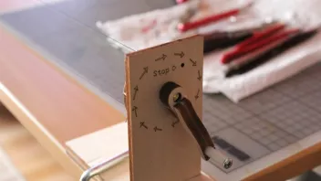 Jetzt wieder leicht straff spannen und nun am Drehtellerschlitten die Kurbel betätigen. Nun werden die drei Adern miteinander verdrillt.