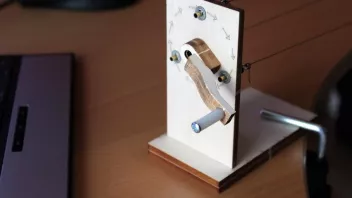 Jetzt wird die Kurbel am Getriebeschlitten gedreht. Dadurch werden die einzelnen Adern in sich verdrillt. Man muss nur darauf achten, dass man einen der Schitten löst und mit einer Hand festhält, so dass die Fäden straff bleiben, der Schlitten aber durch das Verdrillen unweigerlich auf sein Gegenstück zurutscht. Fangen die Fäden an Wirbel zu bilden, reicht es.