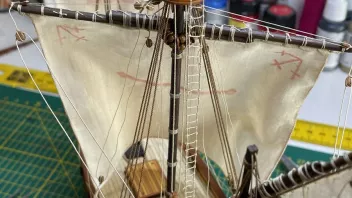So, das Segel ist an der Rute befestigt. Das war hauptsächlich eine Fleißarbeit. Mit Blick in das Buch von Mondfeld u.a. sieht man, was da jetzt noch an Arbeit auf mich wartet. Mal schauen, was ich davon alles realisieren kann und möchte.