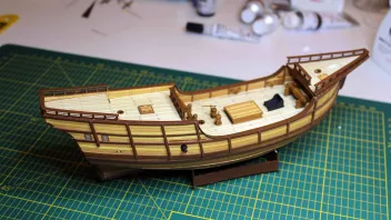 Und das in erster Linie wegen ihrem Aussehen - auch wenn die wahre Pinta vermutlich ganz anders ausgesehen hat, aber dazu später mehr.Was den Bau des Modells so hervorhebt, ist die komfortable Situation die, dass Shipyard zu diesem Modell einen recht umfangreichen, zukaufbaren Lasercutsatz für Decksaufbauten und anderen Krams anbietet - was in dem Umfang für die anderen beiden Schiffe leider nicht der Fall ist. Und so waren dann recht schnell Leitern, Pumpen, Kreuzhölzer, Bratspill, Kochstelle, Geschützschlitten und Lukenränder gefertigt. Die Lukendeckel auszuschneiden war dann wahrlich keine Kunst. Und auch das erste Geländerteil, hier für das Vordeck, war dank Lasercut viel schneller gebaut als bei der Santa Maria, das größere Teil für dieses Deck muss nur noch gepönt werden. Aber: Da gab es ein Aber. Dazu im nächsten Posting mehr. Hier erstmal die Bilder zu diesem Arbeitsstand. Hier ist einiges vom Kleinkram noch an Land: