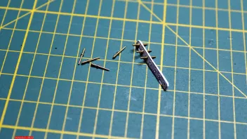 Rechts liegt das Unterteil, welches auf die Bordwand kommt; da kommen die einzelnen Stützen in die kleinen Öffnungen. Soweit, so gut. Im nächsten Bild mal die erste Stütze schon montiert und angebracht (und hier im Bild verkehrt rum, zum Glück noch rechtzeitig gemerkt, bevor der Leim trocken war