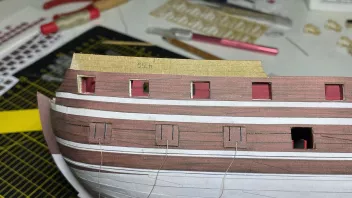 hier wieder ein kleines Update. Steuerbord ist nun auch alles erledigt, was in Höhe des Hauptdecks an Stückpfortendeckeln und Barkhölzern anzubringen ist.