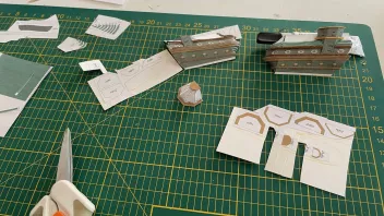 • Kleines Update für zwischendurch: Ich habe mit den Seitentaschen begonnen. Das ist eine herrliche Schnippelei und manchmal auch ein großes Rätselraten. Ganz ehrlich: Allein mit der dem Bausatz beiliegenden Bauanleitung kann man dieses Schiff m.E. nicht bauen. Ich orientiere mich viel an den Fotos, die der Konstrukteur im SOS-Forum in seinem Bericht vom Referenzbau zeigt, die beantworten dann zumeist die Fragen, aber auch nicht alle. Dazu kommt noch, dass einige Teile auf den Bögen falsch beschriftet sind (rechts und links verwechselt bzw. das eine doppelt, das andere gar nicht, also probieren und dann doch das andere ausschneiden...)