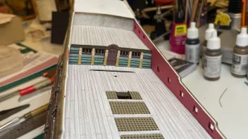 Update von heute: Das Schott war richtig viel Arbeit, viele kleine Papierschnipsel sinnvoll zusammensetzen und dann noch so, dass am Ende alles passt - aber ich bin zufrieden. Da kommt dann später auf die Kante noch ein schmuckes Geländer und an die obere Kante des Schotts noch ein feiner Zierstreifen. :sun: