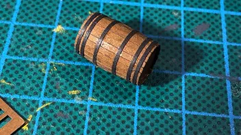 Gestartet habe ich mit dem Bau von einem der insgesamt 10 Fässer, die komplett aus LC-Teilen gebaut werden. Im Unterschied zu den meisten angebotenen Modellen, bzw. Ergänzungs-Sets aus LC-Teilen, hat Tomek die Fass-Teile bereits aus Karton in der entsprechenden Farbe gelaster, was ein Nachfärben erübrigt udn eine tolle Optik garantiert.
