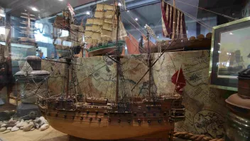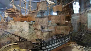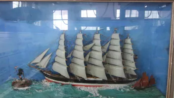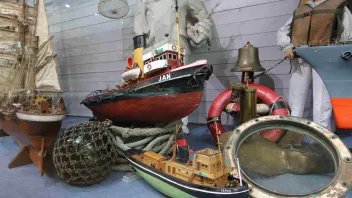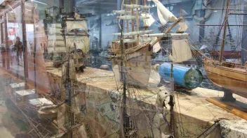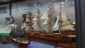 Das, was man dann beim Betreten des Gebäudes, dessen Ausstellungsfläche einen einzigen großen Raum einnimmt, sieht, lässt einen dann doch etwas ratlos zurück. Von ganz wenigen Ausnahmen abgesehen stellt man sich in etwa so die Anfänge der Tamm'schen Sammlung vor. Alles, was nach maritim aussieht, erstmal aufbewahren, irgendwie irgendwo hindrapieren, zumeist ohne eine erkennbare Ordnung und Struktur und fast ohne erläuternde Tafeln oder Schilder. Und es gibt "Objekte", die ich nie und nimmer in ein Museum stellen würde - dazu dann später ein hübsches Beispiel.