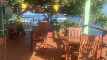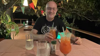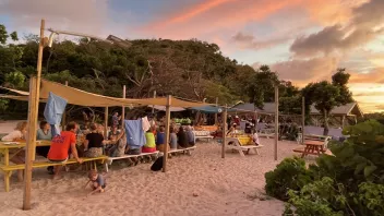 Direkt gegenüber von unserem Liegeplatz ist ein kleines Hotel mit einer hübschen Strandbar. Dort kehren wir auf zwei leckere Cocktails ein.
