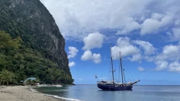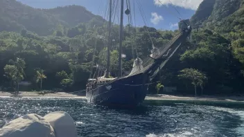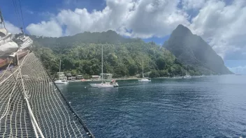 • Heute wird mal nicht gesegelt - wir legen einen Ruhetag hier vor St. Lucia in der Soufriere Bay ein. Mit dem Dingi fahren wir dann in den kleinen Hafenort, der der Bucht den Namen gab.