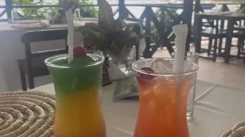 Der Shuttleservice unseres Hotels klappte auch wunderbar, und nachdem wir glücklich und doch reichlich erschöpft so ca. 22:00 Uhr Ortszeit eingecheckt hatten, bekamen wir noch ein tolles Abendessen gekocht. Barrakuda-Filet - eine neue und überaus leckere Entdeckung für uns. Und selbstredend folgte dann auch der erste Cocktail, und der Klassiker dort ist der Traditional Rum-Punsch. Sehr zu empfehlen!
