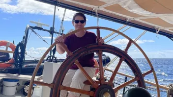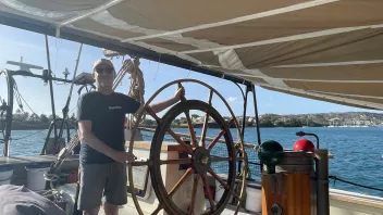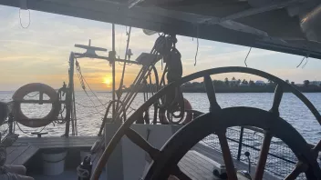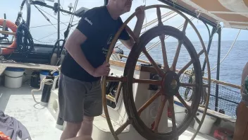 Um mal wieder die Twister mit der Hendrika zu vergleichen. Wenn die Hendrika Bartelds eine flotte ältere Dame ist, ist die Twister ein junges Vollblutrennpferd. Da wird das Steuern auch zur Herausforderung: Matrosin Katrin hat mir ausführlich erklärt, wie ich eine sanfte Balance zwischen Anluven, Geschwindigkeit aufnehmen, abfallen und Kurs halten hinbekomme, um nicht in einem Zick-Zack-Kurs soeben gewonnene Strecke gleich wieder zu verlieren. Hat man den Bogen erst einmal raus, macht es aber unglaublich viel Spaß.