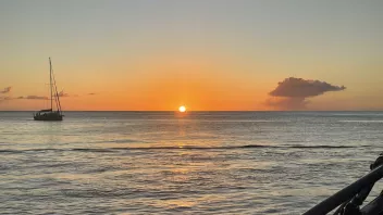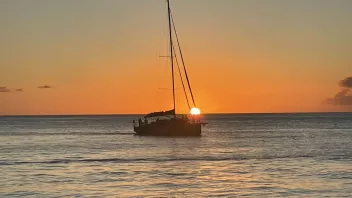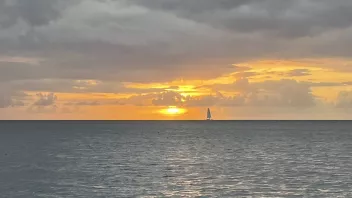 Später dann - auch das dann jeden Abend! - ein herrlicher Sonnenuntergang über dem Meer. Klar doch, da muss noch ein Segelboot in die Szene fahren - das grenzt dann wieder mal an Kitsch. fr21
