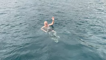Ein kurzes Bad im Meer, dann lassen wir uns, zusammen mit einigen weiteren unternehmungslustigen Mitreisenden, vom Beiboot zur "Floating Bar" bringen.