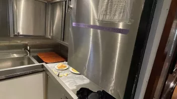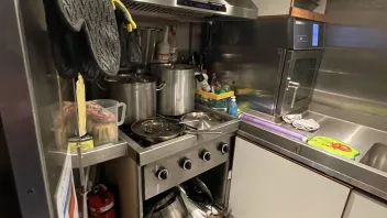 Das ist ihre Kombüse. Ich habe auf der Hendrika fast viermal soviel Platz - und ich habe backbord, steuerbord und über mir Fenster, die ich öffnen kann - ihr Arbeitsplatz ist unter Deck! :resp: