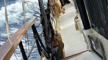 Man sieht auf diesem Foto übrigens das Sicherungsnetz, dass immer auf der Leeseite angebracht wurde. An diesem Tag war es noch nicht so heftig, aber einige Male fehlten da gefühlt nur wenige Zentimeter, dass die Reling die Wasseroberfläche kratzte.