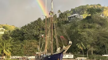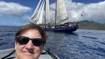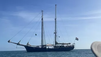 Die Twister ist ein Zweimastschoner, fährt unter holländischer Flagge und hat in Harlingen am IJsselmeer ihren Heimathafen. Ihre Reise in die Karibik begann am 2. Januar in Rotterdam. Von dort ging der erste Törn nach Lissabon, dann von dort nach Paramaribo (Hauptstadt von Surinam). Von Südamerika ging es dann nach Grenada, wo wir nun an Bord kamen. Bemerkenswert fanden wir, dass es 6 Passagiere gab, die bereits seit Rotterdam auf dem Schiff waren, darunter ein holländisches Ehepaar, sie 81, er 84. Respekt! Jessica und ich waren die einzigen deutschen Passagiere, ansonsten waren es etwa gleich viel Engländer und Holländer sowie zwei Leute aus den Staaten. Der Kapitän, Floris, ist Holländer, seine mitreisende Ehefrau Deutsche. Die Steuerfrau (NL), die Matrosin (D) sowie die Smutje und ihre Gehilfin (beide NL) waren die Crew, die für unser Wohl sorgte. Ach ja, und es gab noch zwei Mitreisende - die Kinder des Kapitäns (5 und 1). Man kann den Nachwuchs nicht zeitig genug in die Musterrolle eintragen - das kennen wir ja alle. :D