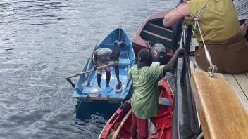 • Überall, wo wir ankerten, kamen irgendwann mehr oder weniger viele Bumboote. Obst, Gemüse, Schmuck... das Angebot war vielfältig.