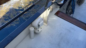 • Was niemanden verwundern wird, der uns kennt: Wir ziehen natürlich immer mal wieder Vergleiche zu unserer guten alten Hendrika Bartelds. Die Twister hat schon einige Besonderheiten aufzuweisen, die wir so noch nicht kannten. Da wären zum einen die Winschen zum Bedienen der Schoten der Vorsegel. Man sieht sie auf dem zweiten Bild im vorigen Posting - die flaschenartigen dunklen Dinger auf dem Vordeck. Mit denen kann man locker zu zweit jede Schot schnell und präzise trimmen.
