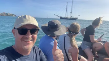 Später machten wir uns dann am Ufer bemerkbar und wurden vom Dingi wieder an Bord geholt - nur um nach einem leckeren Mittagessen gleich wieder mit Brille und Schnorchel nach der Unterwasserwelt zu schauen.