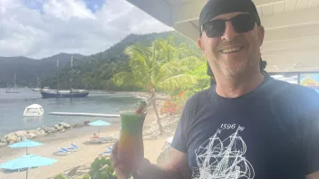 So langsam wird es jetzt aber Zeit, sich auf den Segeltörn zu freuen. Noch ein Cocktail am Strand, und am nächsten Tag brachte uns Japal dann zur Prickly Bay. Und da hinten lag sie: Unsere Twister!