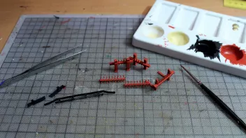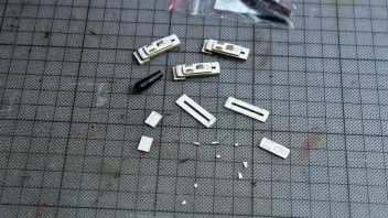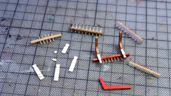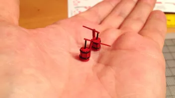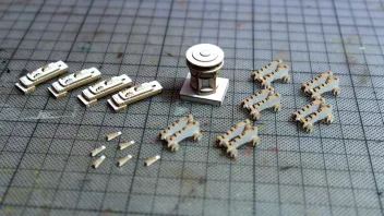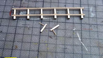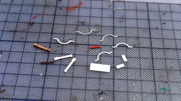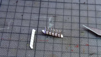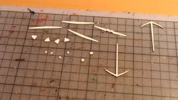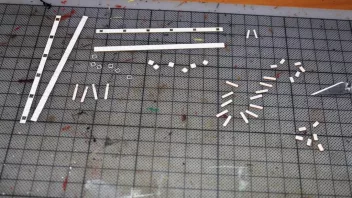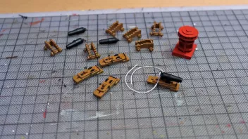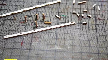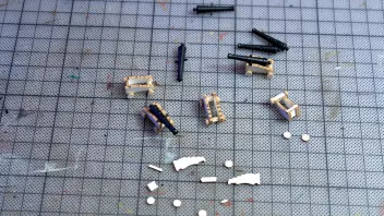 Nun war viel Kleinkram angesagt. Hier die Teile für das Geländer am Heck, im Hintergrund sieht man Relingteile, die nach dem Anmalen trocknen.![]()