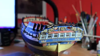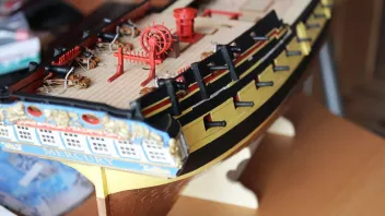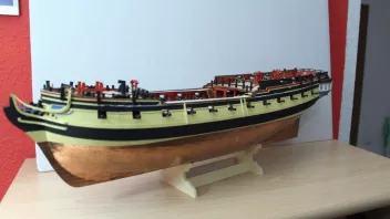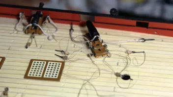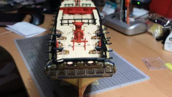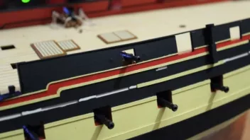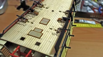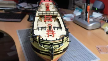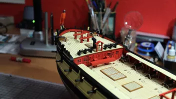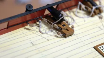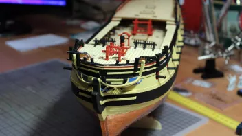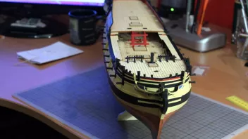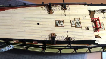 Die Nagelbänke bringe ich erst später an - ich habe ja auf dem Achterdeck noch vier Kanonen und vier Karronaden sowie auf dem Vordeck weitere zwei Kanonen aufzustellen; da brauche ich Platz zum Arbeiten. ![]()