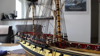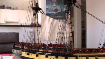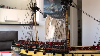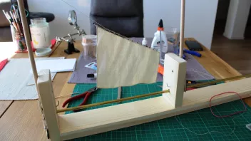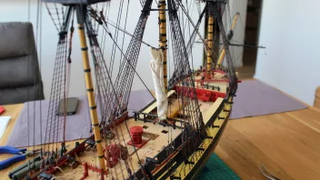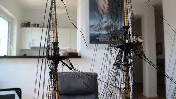 Und schon ist es soweit. Das hat jetzt nochmal viel Arbeit, aber eben auch viel Spaß gemacht. Die Taue für die Schoten musste ich abschneiden und neu machen - die hatte ich viel zu kurz berechnet. Aber ansonsten blieb es abrissfrei. :D
