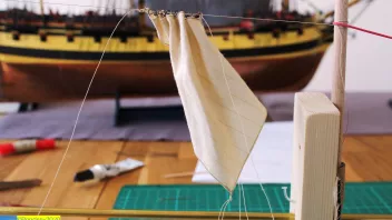 Ahoi Angarvater hier will ich doch unbedingt noch antworten. Genau das sind ja auch meine Gedanken, und daher habe ich mich entschlossen, es mit den Segeln im Bausatz zu versuchen. Und mein Experimentieren hat mir, wie ich finde, Recht gegeben - nachdem ich das Stagsegel ein zweites Mal und da dann wesentlich fester als beim ersten Versuch eingebunden habe, kann ich da nichts in Richtung überdimensioniert und zu dick entdecken.