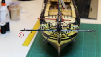 Dadurch war ein wenig mehr Platz an der Bramsaling, da konnte ich dann einen Leitblock für das Fall dieses Segels anbringen.