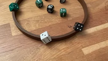 Ok, schmeißt man die Würfel mit reichlich Schmackes in den Ring, springen sie auch gern mal über die Begrenzung. Aber bei einem einigermaßen sittsamen Würfelverhalten erfüllt der Ring zuverlässig seinen Zweck.