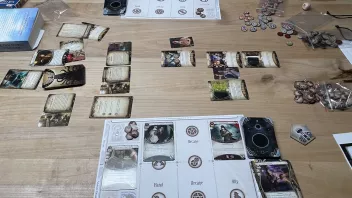 Es soll aber auch gesagt sein, dass man eine Kampagne druchaus nicht nur einmal speilen kann. Es stehen 5 Ermittlerdecks (alleine im Grundset) zeur Verfügung, die alle andere Charaktere und Fähigkeiten haben. Die gleiche Kampagne mit anderen Ermittlern gespielt kann komplett anders laufen. Auch gibt es verschieden Schwierigkeitsstufen. Und dann natürlich ergänzende Ermittlerdecks.Ich bin hin und weg vom Spiel, und schön ist, dass auch mein Sohn, der derzeit ansonsten lieber in seinem Bett liegt, fern sieht, oder Computerspiele zockt, auch nach Arkham Horror süchtig geworden ist