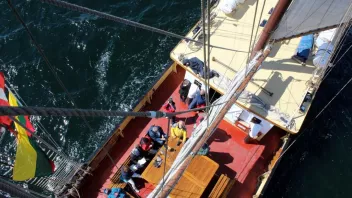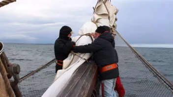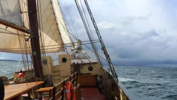 Als wir dann endlich auch losfuhren und schon bald die ersten Segel setzten, hieß es auch schon: "Geh ans ruder, Bonden!"