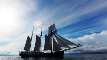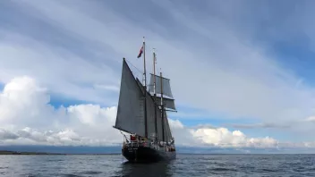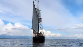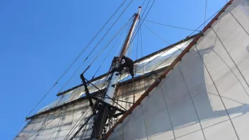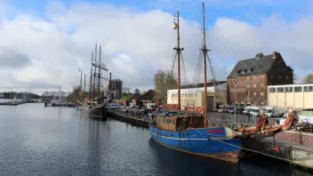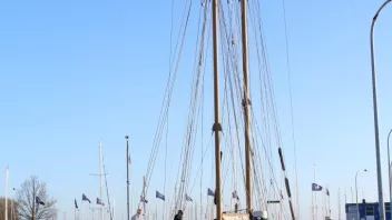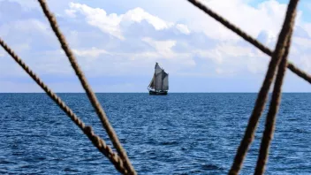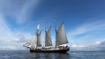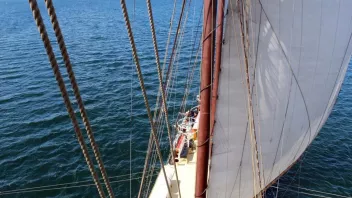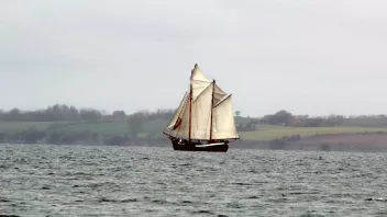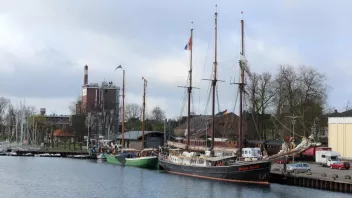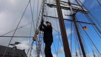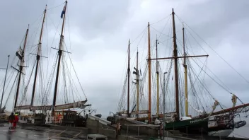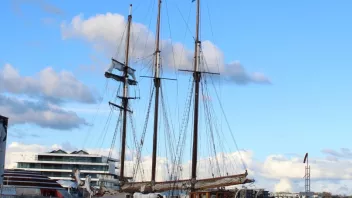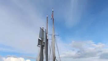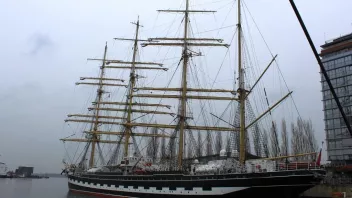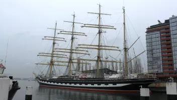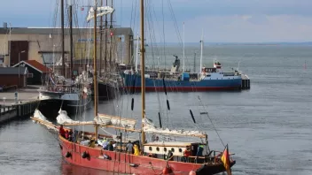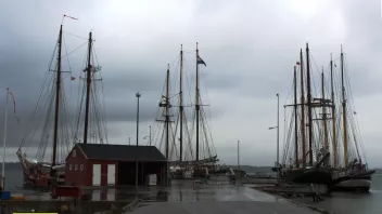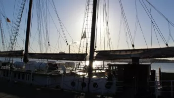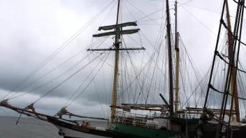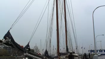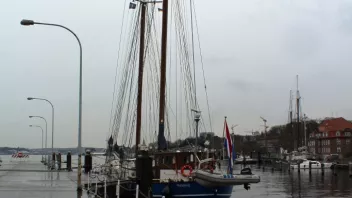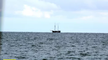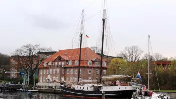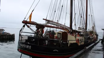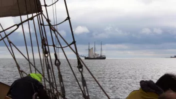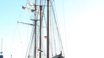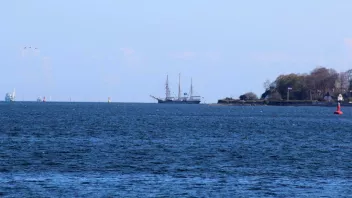 Noch bevor wir ablegten, sahen wir in der Ferne ein weiteres Segelschiff; leider lagen wir noch immer am Kai, als es die Kieler förder hinabsegelte und nicht mehr gesehen ward...![]()