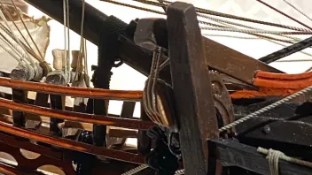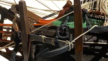 Vielen Dank für Eure freundlichen Kommentare zum Neubau! So ganz fertig ist die Witsen ja noch nicht. Die Fahnen werden erst Anfang nächster Woche geliefert, und die Hecklaternen zu machen war nicht ganz ohne. Ehe ich dazu komme hier noch ein paar Bilder vom Vorschiff und den Ankern. Sie entstanden, als ich nochmals die Takelage inspizierte.