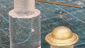 Was dann kommt ist ein Haufen Spielerei mit Messingprofilen, dünnflüssigen Cyanoacrylatkleber, etwas Messingprofil und Goldfarbe.