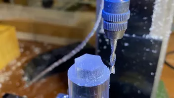Also wurde ein circa 40mm Stück auf dem Teilappart eingespannt, um dann mittels eines 3mm Fräsers auf Form gefräst zu werden.